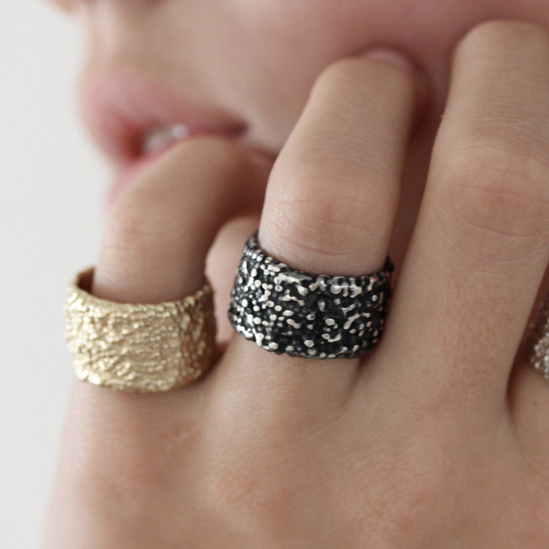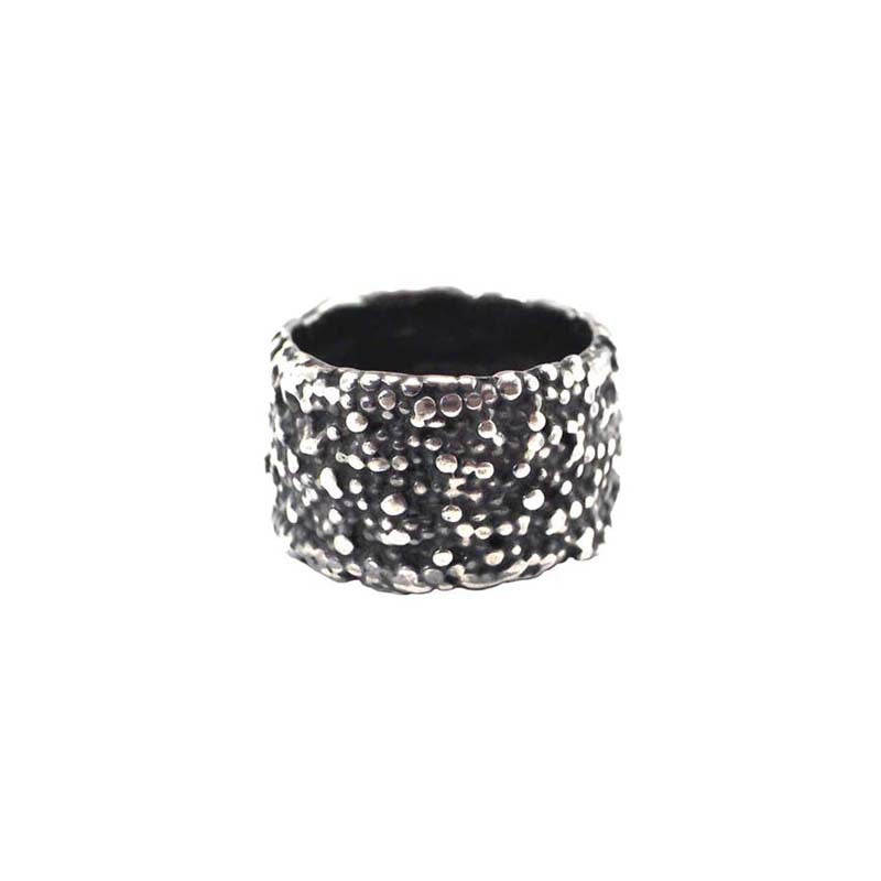 Issue de la collection phare de la marque, la bague Billes Large n'en finit pas de jouer avec la matière et les reliefs. Polie à la main, elle révèle ici ses aspérités et joue avec l'Argent oxydé, qui sublime son identité.