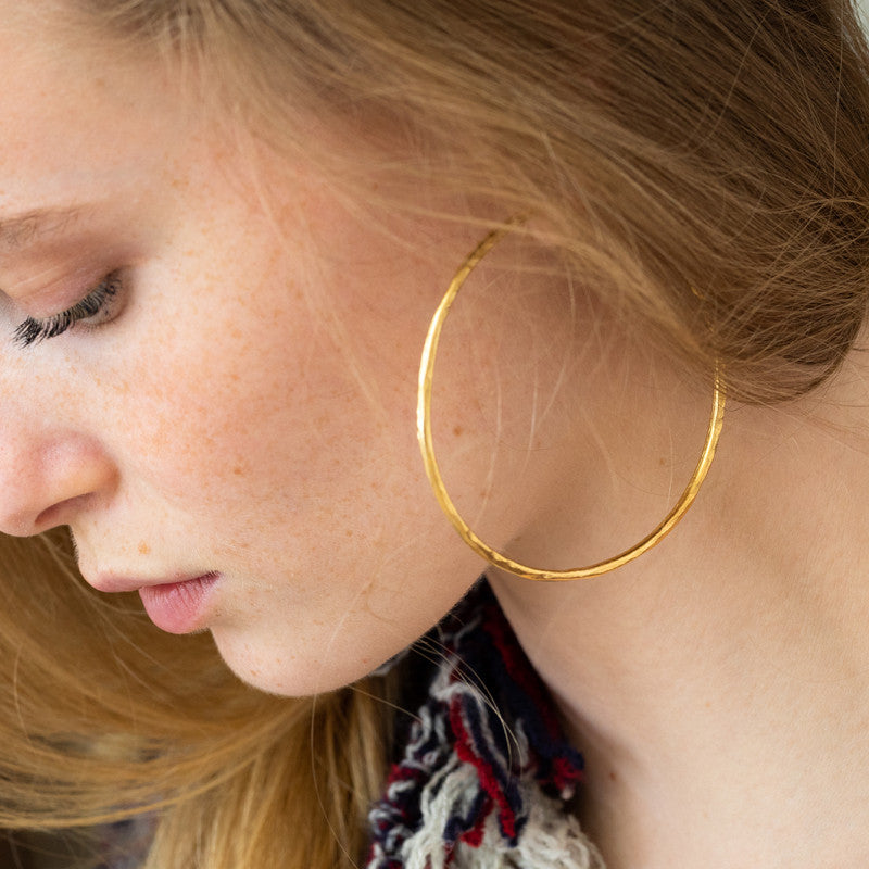 Paire de créoles grand modèle en Argent 925 doré à l'Or fin de la collection Brindilles. Légères et faciles à porter, elles s'accorderont avec tous les styles.