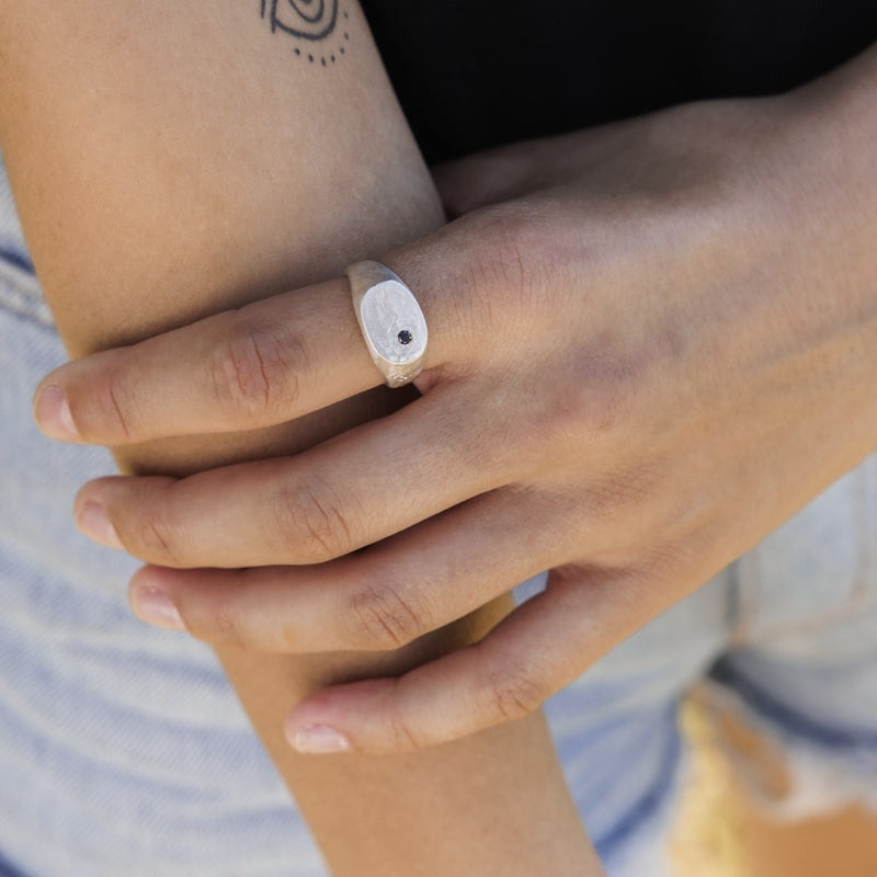 Chevalière Diamant noir Argent - Legend
