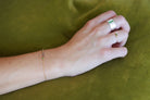 Bracelet minimaliste à la fois brut et délicat, il allie une chaîne en or et un cordon ajustable, ponctué de petits hexagones en or et d'une Tsavorite. Il incarne une esthétique à la fois authentique et sophistiquée, fidèle à l'univers de la marque, parfait pour une touche d'élégance naturelle au quotidien, le cordon est réglable, le mélange chaîne