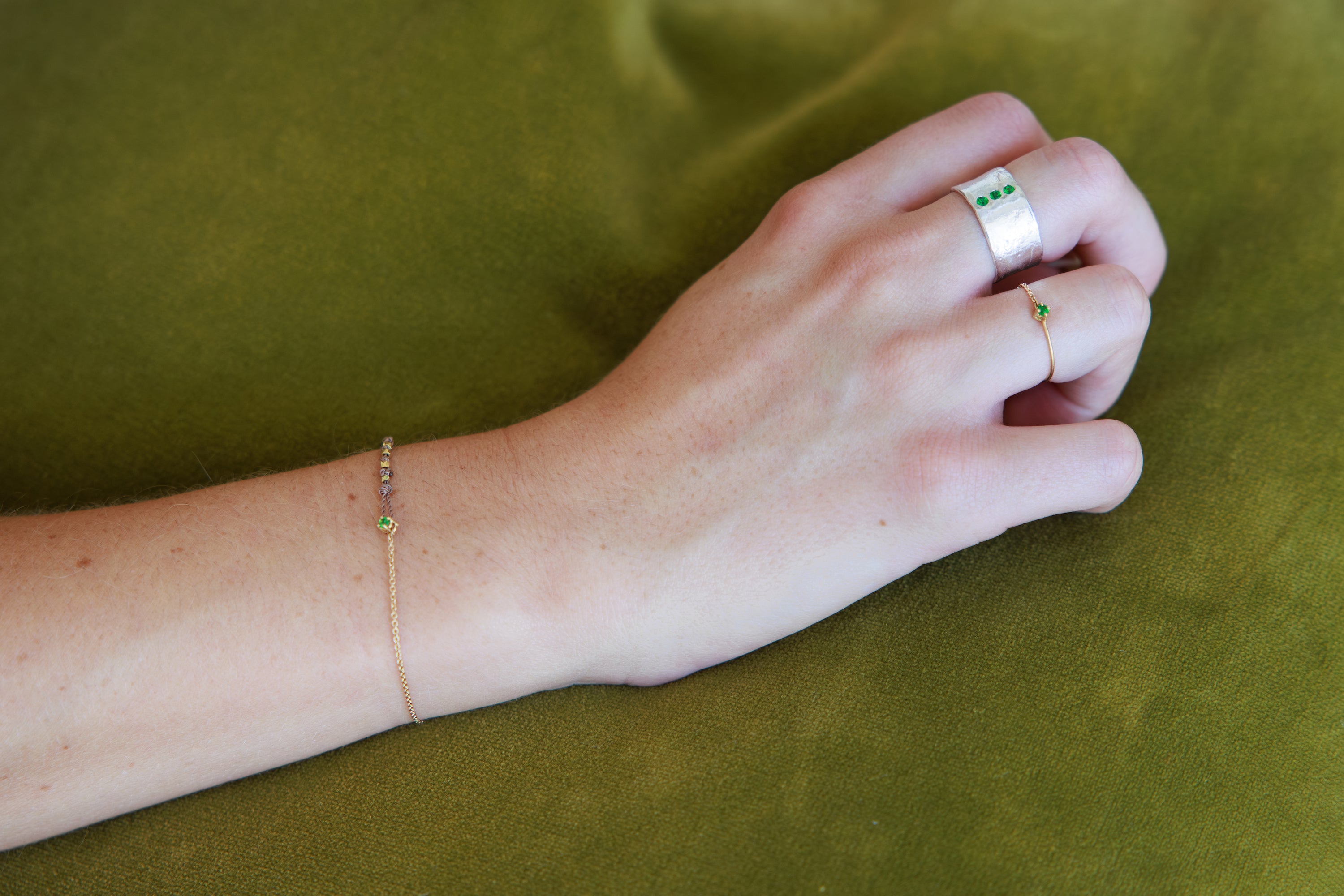 Bracelet Pigment Cordon Tsavorite Or